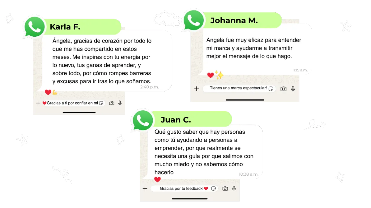 Este sitio no está asociado a Facebook en ninguna forma, ni a ninguna de sus subsidiarias. Los resultados individuales en el emprendimiento pueden variar de Emprendedor a Emprendedor. Angela Botero, el espacio de Ideas a Negocio o el curso Emprende Desde Cero no hace garantías ni promesas de ingresos, tampoco para quienes acceden a las mentorías o consultorías.